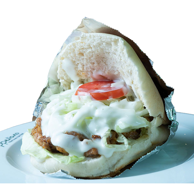 Prepared with chicken cut into thin slices, stacked in a cone like shape & roasted on a slowly turning vertical rotisserie or spit