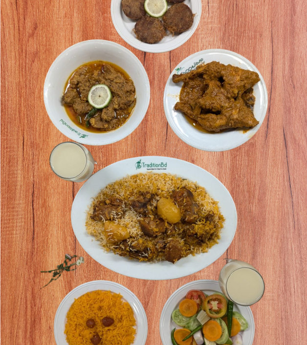 Special Shahi Mutton Basmoti Kacchi with Chicken Roast, Beef Rezala, Chicken Jali Kebab, Jorda, Borhani, Salad-3Person
